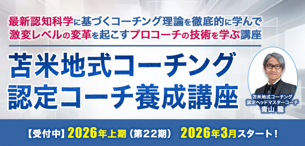 青山龍ヘッドマスターコーチによる、苫米地式コーチング認定コーチ養成講座の募集をします。